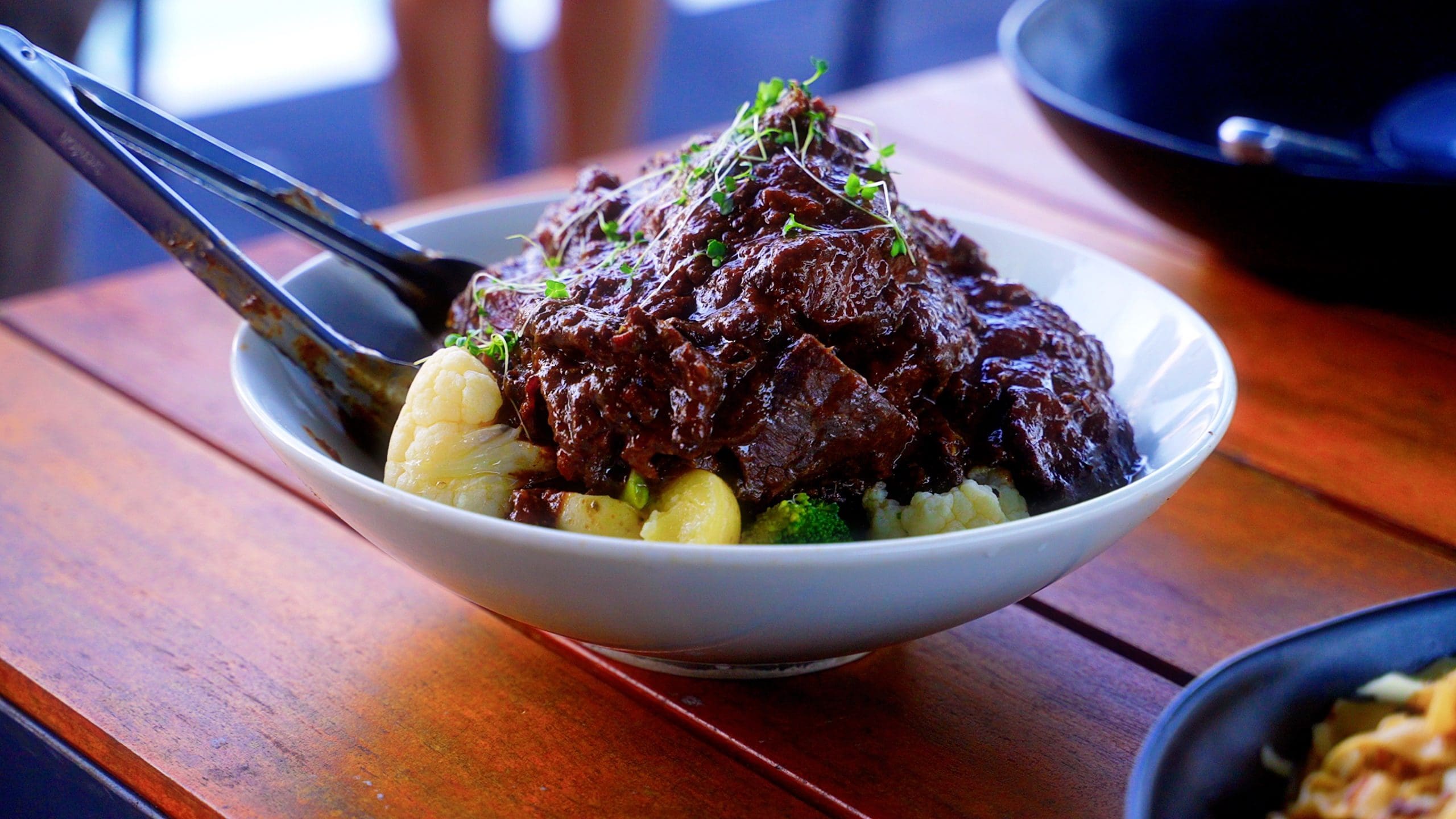 Ingredients: Beef cheeks onion celery garlic carrot bay leaf and thyme red wine beef stock (gf) Mash potato contains garlic butter and cream